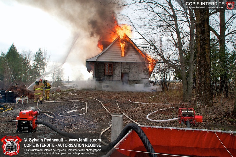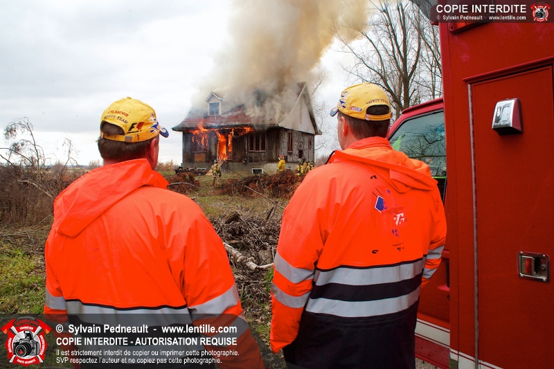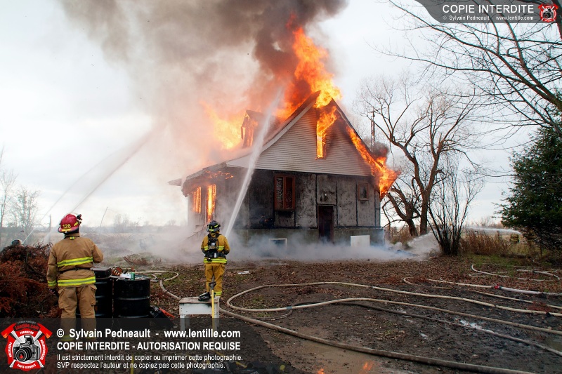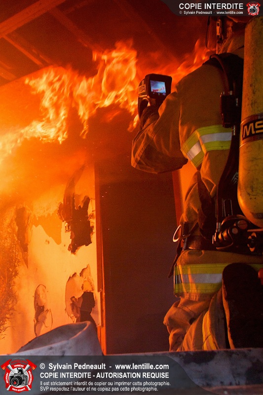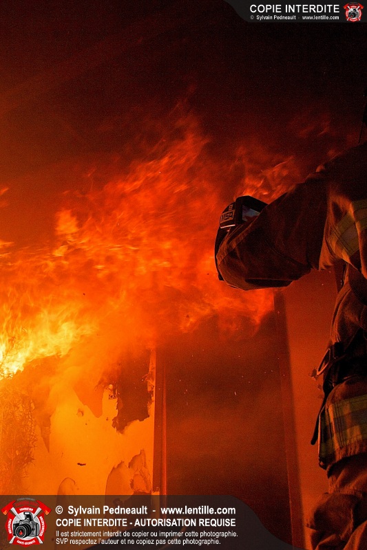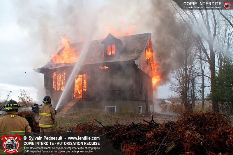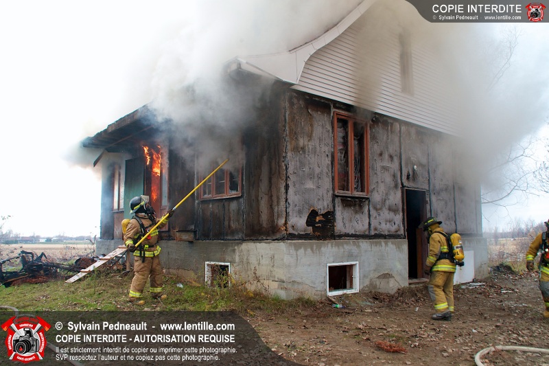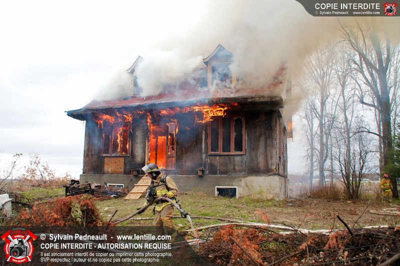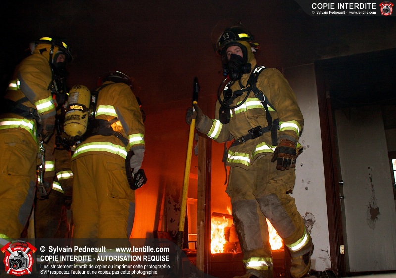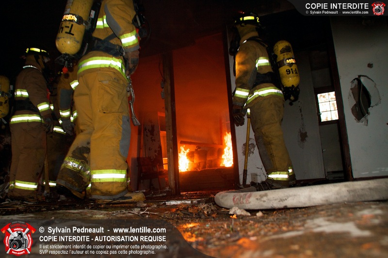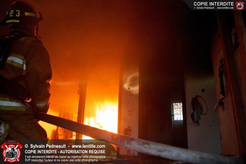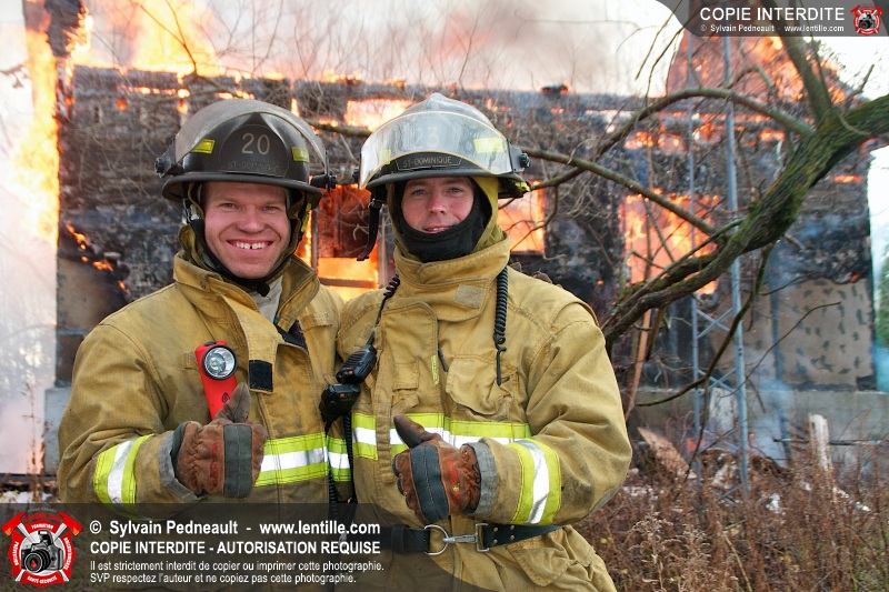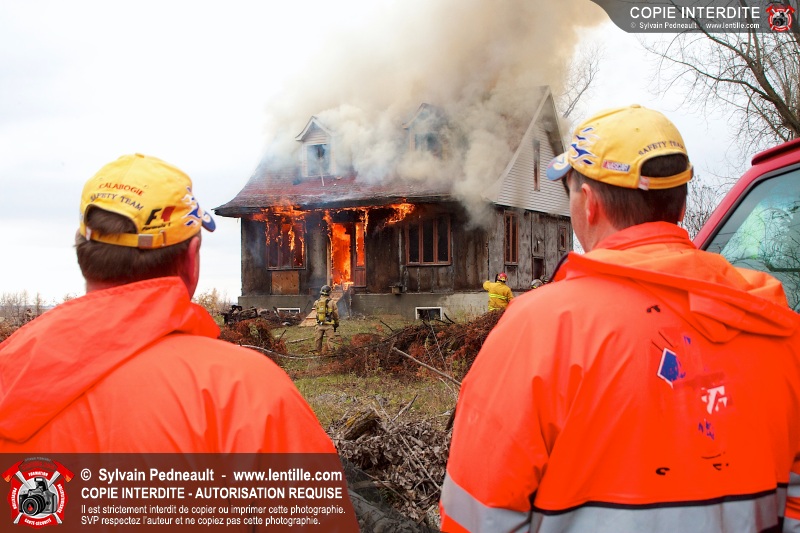 Le Service de sécurité incendie de Saint-Dominique a organisé une pratique d'incendie dans une maison abandonnée. Disposer d'un bâtiment à faire brûler étant une très rare opportunité, le service incendie a tout mis en oeuvre pour maximiser l'apprentissage de ses pompiers durant cette journée.